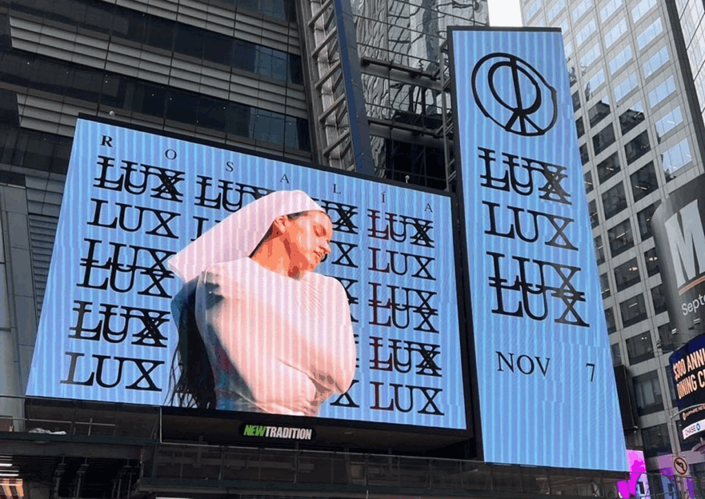 O anúncio não passou despercebido: telões gigantes na Times Square, em Nova York, e na Gran Vía, em Madri exibiram a cantora totalmente de branco, com véu, enquanto o nome Lux surgia repetidamente ao lado da data de estreia. Mais tarde, no Instagram, ela celebrou com um simples e poderoso: “Habemus álbum.”