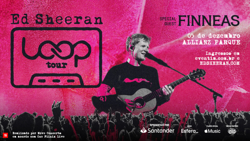 Ed Sheeran confirmou o retorno ao Brasil com a nova turnê mundial, a “Loop Tour”. O show acontece no dia 5 de dezembro, no Allianz Parque, em São Paulo. Dessa forma, o artista marca sua volta ao país após o encerramento da “Mathematics Tour”, que percorreu o mundo por três anos.